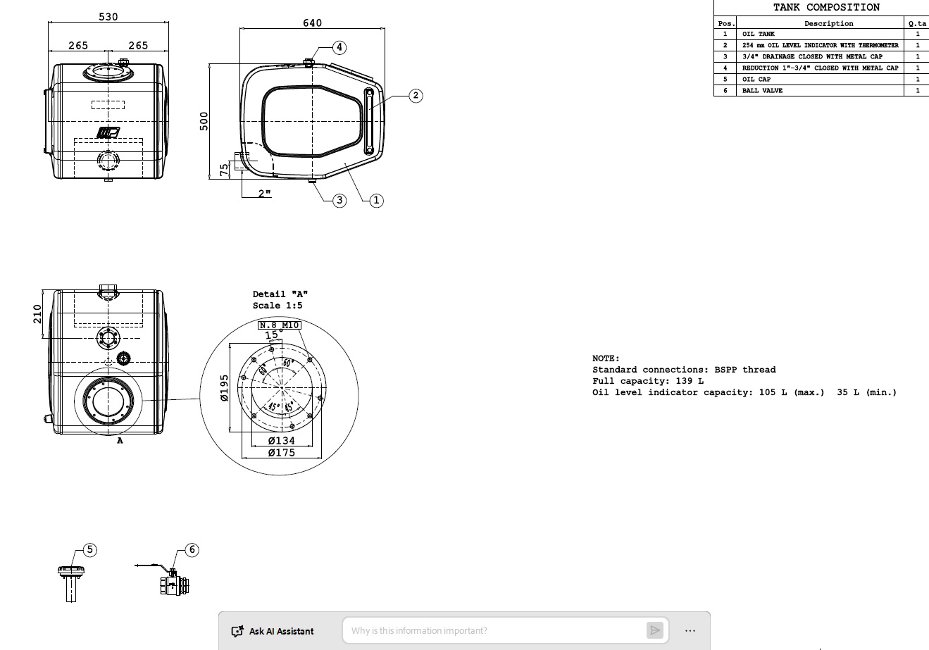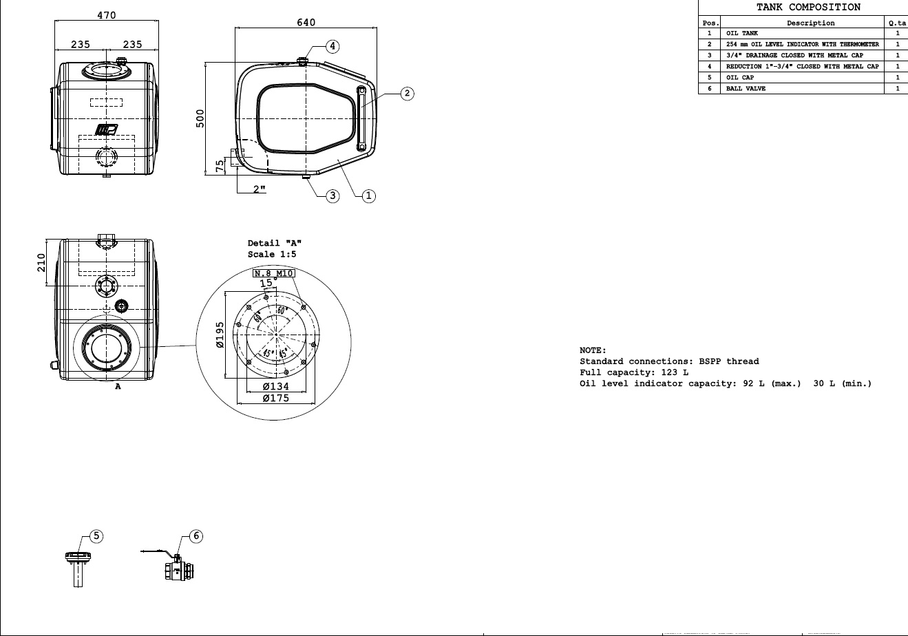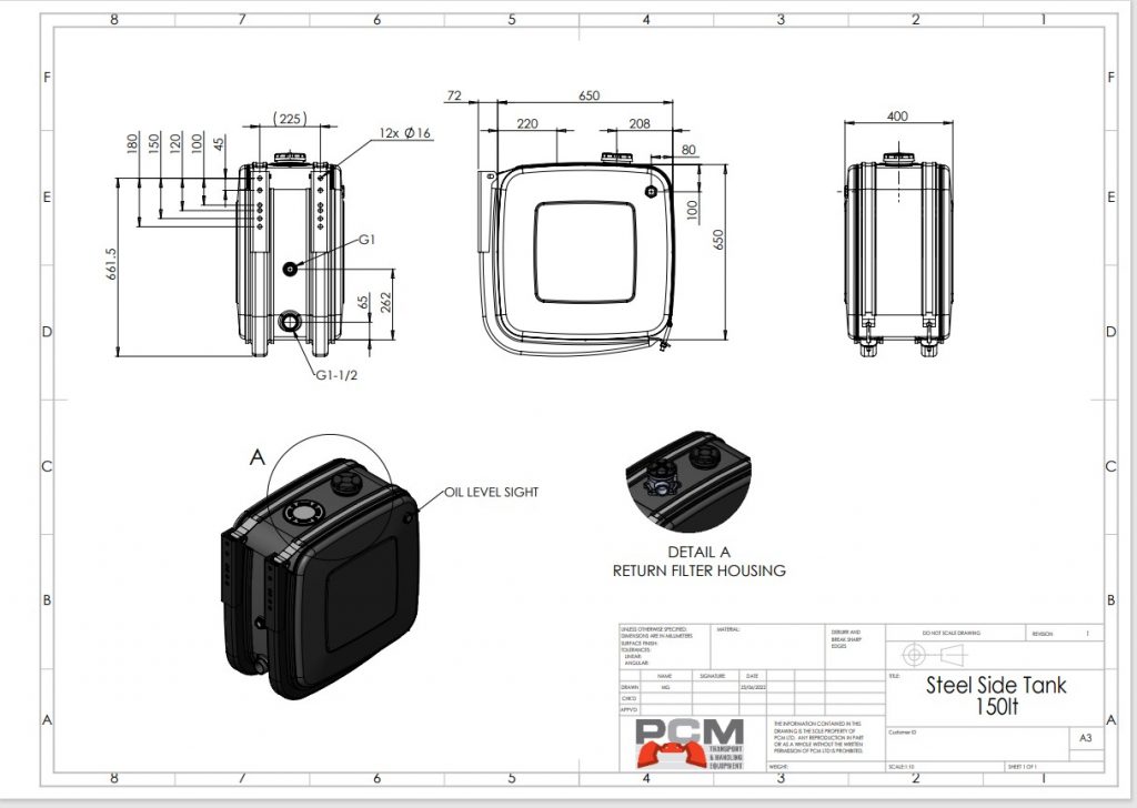 120lt T20 Hydraulic Oil tank diagram/dimensions